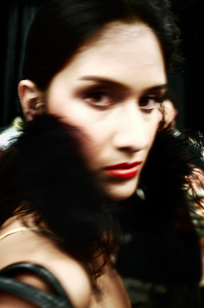 I worked from stories told by women in my family, but also from the raw realism of Polish cinema of that era. I observed how these women lived in those conditions, how they looked, how they moved. From there, I built a vocabulary of archetypes: the white shirt, long coats, furs and fur accessories. I mixed these simple, almost austere garments with more intimate elements, closer to lingerie or eveningwear.