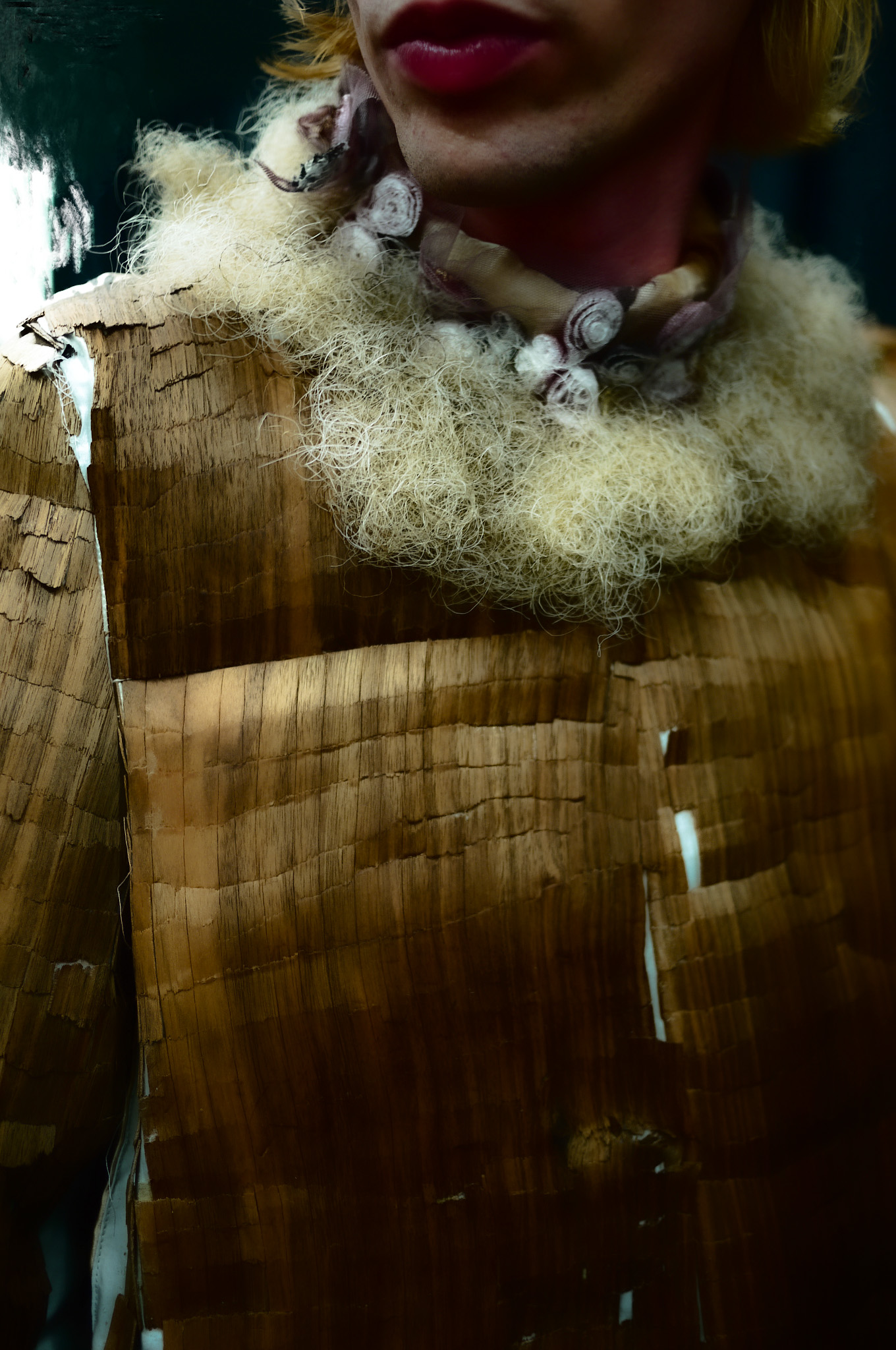 “This collection tells a part of my story, and how I found different ways to be happy and face the world. In terms of form, I imagined what our bodies might look like if every emotional wound had left a physical deformation. I created those distortions and started from my own wardrobe. I’ve moved through very different worlds. I was born into a bourgeois environment and ended up on the street quite young, so my clothes still carry traces of all these places. I’ve always been drawn to clothing, and I was lucky to meet a tailor who taught me traditional techniques. That created a constant tension in my life between refined, almost bourgeois craftsmanship and the rougher parts of my past. I use upcycling and waste materials. I made bags covered in knots cut from beer cans, a nod to the can-ashtrays I made as a teenager. The knots throughout the collection come from a disastrous tatoo I did when i was fifteen in Charleroi. It wasn’t pretty, and transforming something awkward or ugly into something beautiful became the central idea.
